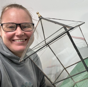 Carol first started working with stained glass at Adult Education classes over fifteen years ago and then at the Weidman Glass studio. She works mainly with cold glass and has taught copper foiled suncatchers and 3d artworks for six years. She is always striving to find new ways to share the beauty of stained glass, bringing these traditional skills into the modern home in both realistic and abstract pieces.